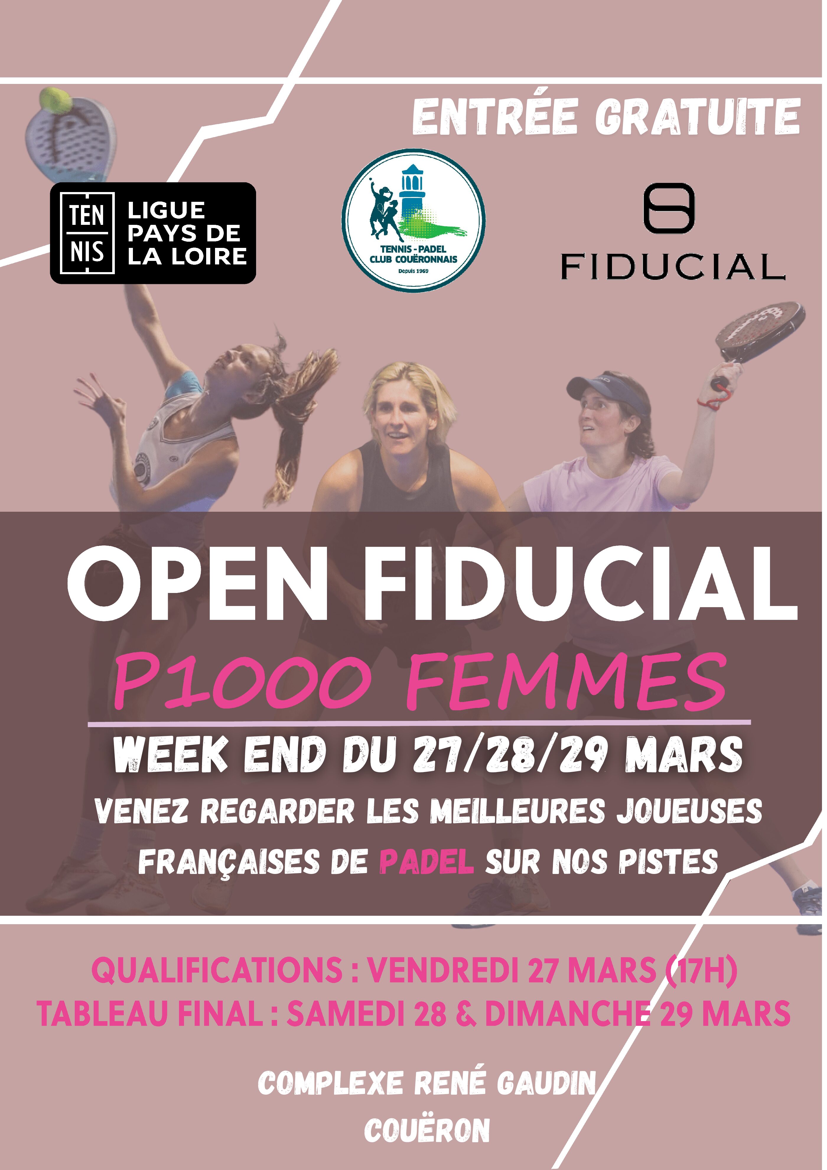 En partenariat avec FIDUCIAL, le Tennis Padel Club Couëronnais a le plaisir d’organiser son tout premier tournoi P1000 féminin de PADEL le week-end du 27/28 et 29 mars.